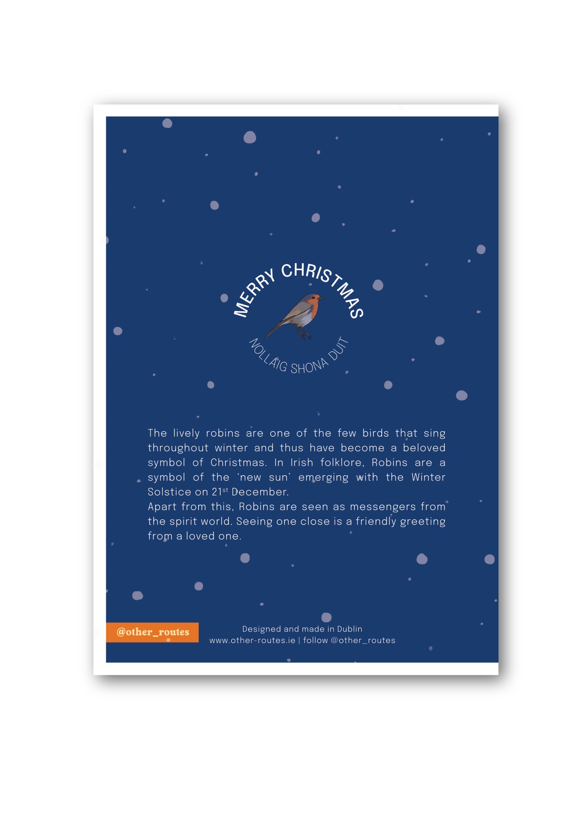 Robins are one of the few birds that sing throughout winter which has made them a symbol for Christmas. In Irish folklore they, are seen as the messenger of the "new sun" which will emerge with the winter solstice on December 21st when the days are slowly starting to grow longer again.
