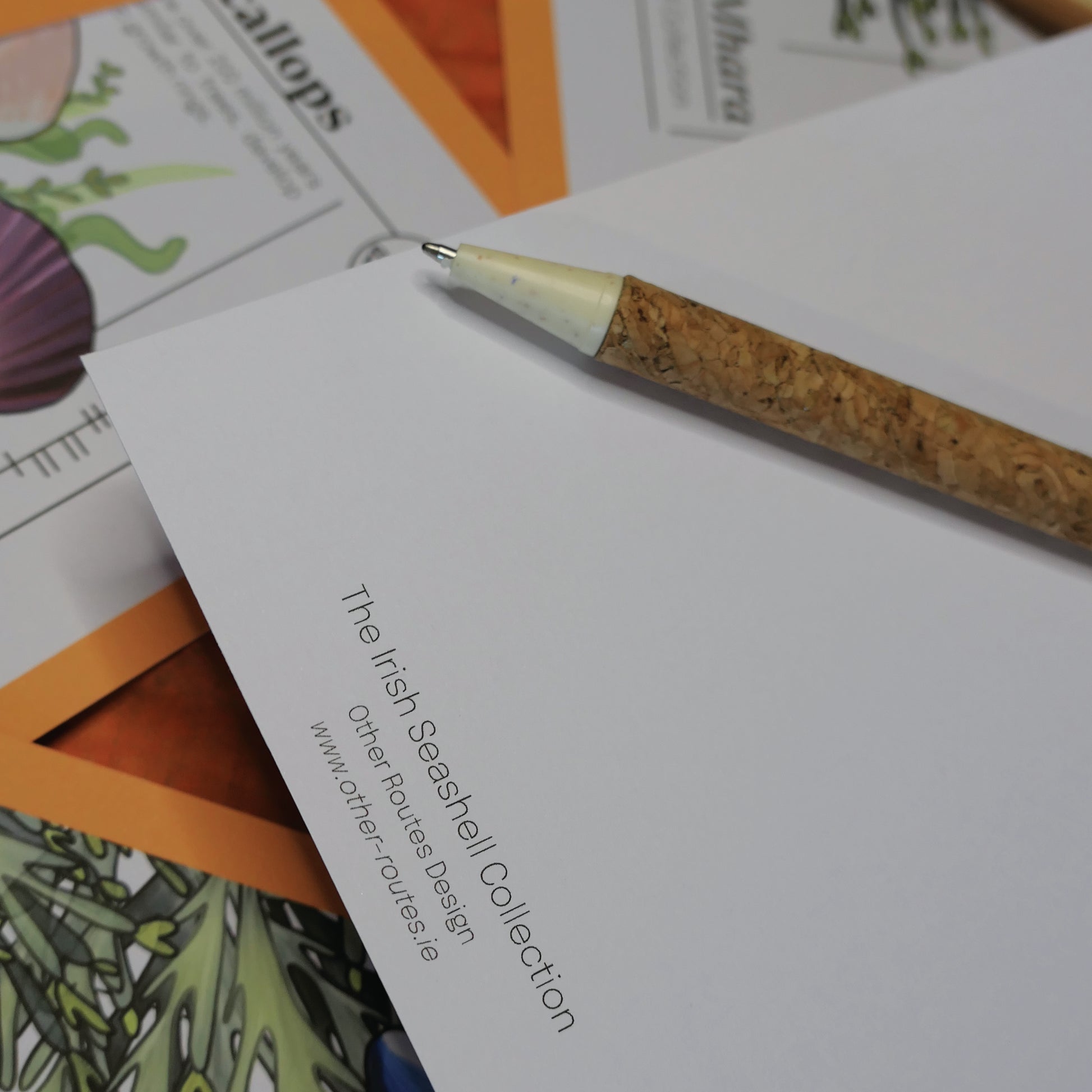 Explore the treasures of Irish beaches with this writing set, containing 10 cards with unique, hand-drawn designs of Irish Seashells.