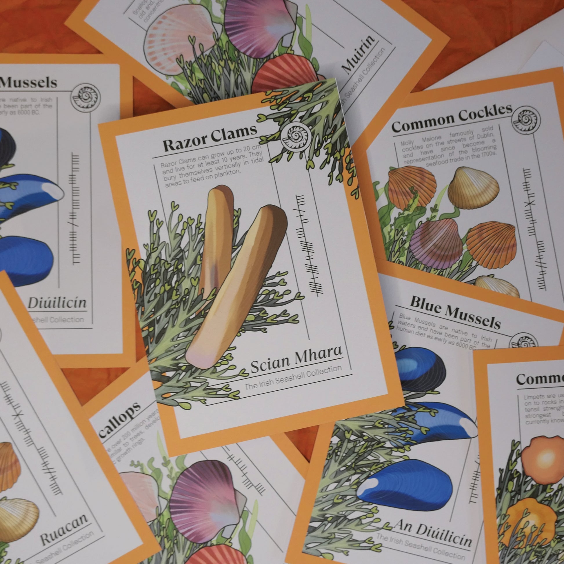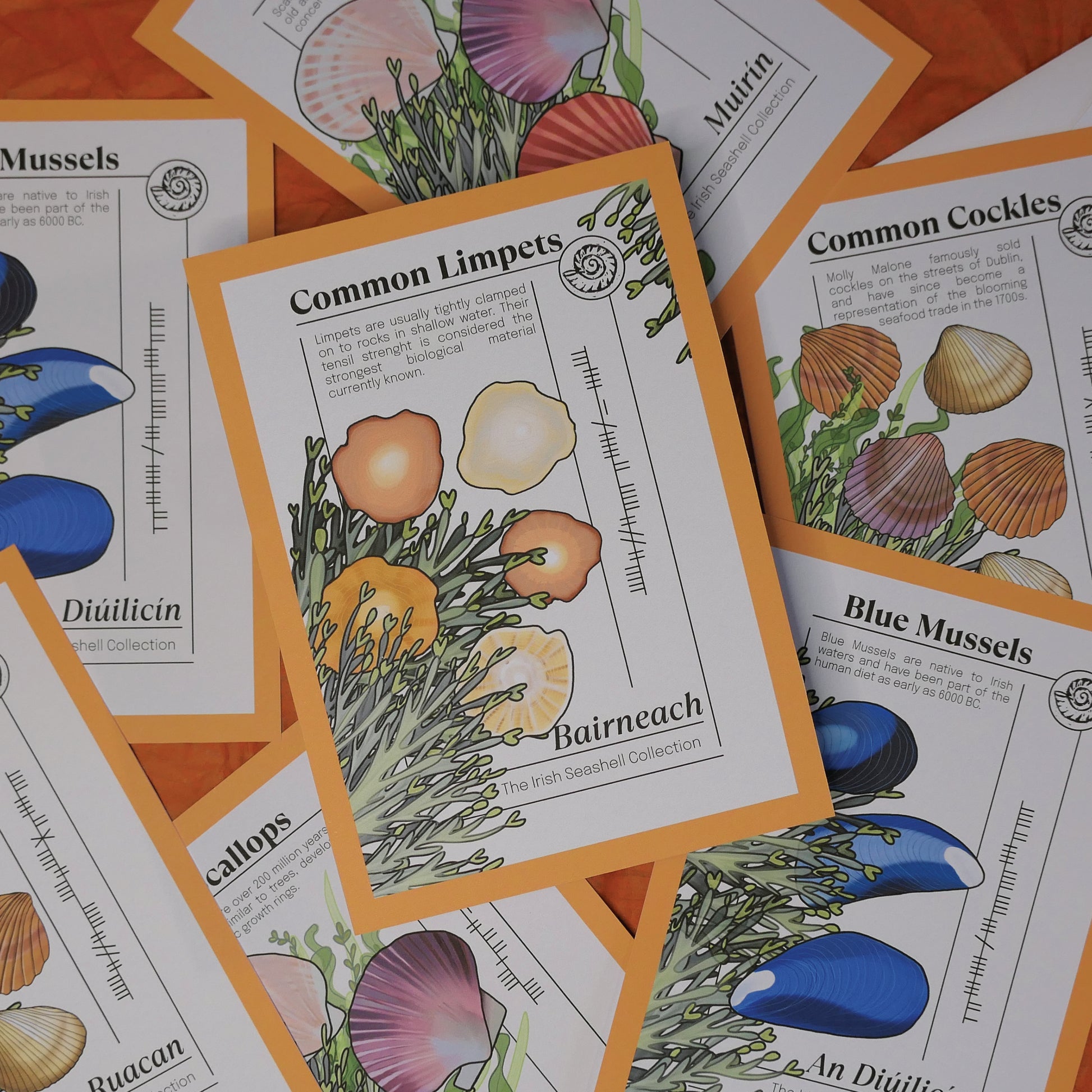 - Designs include: Blue Mussels, Razor Clams, Common Cockles, Scallops, Limpets
